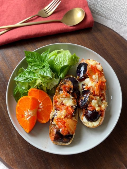 なすを使ったお料理2品(茄子とキムチのピザトースト・茄子の梅味噌和え)