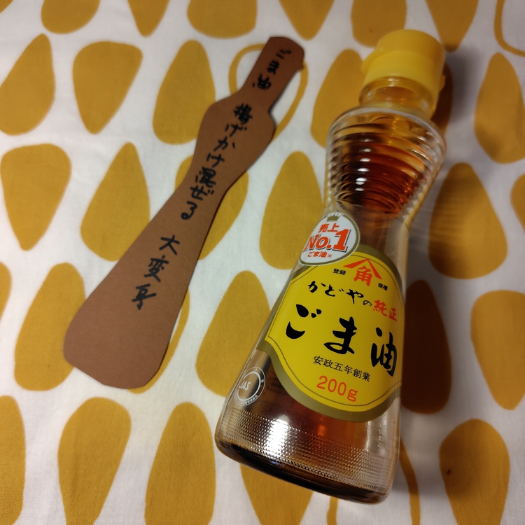 ただいまの 笑顔広がる ごま油 ただいま♫って、帰ってきて扉...