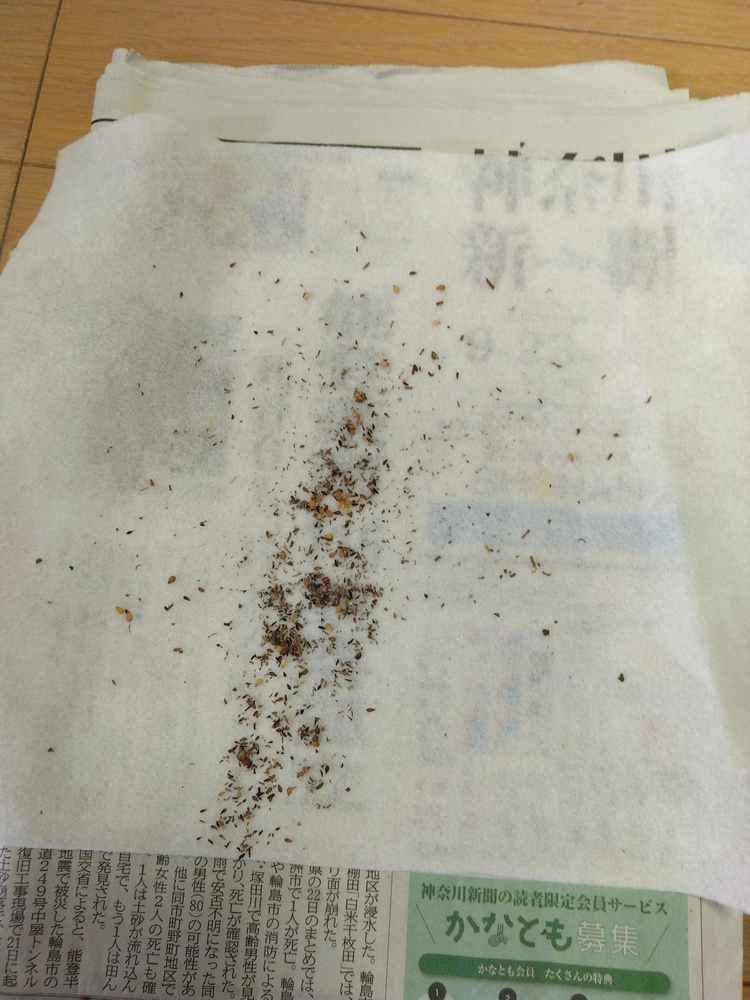 すると乾燥の時に下に敷いてたキッチンペーパーにゴマ以外の混入物がかなり残りました