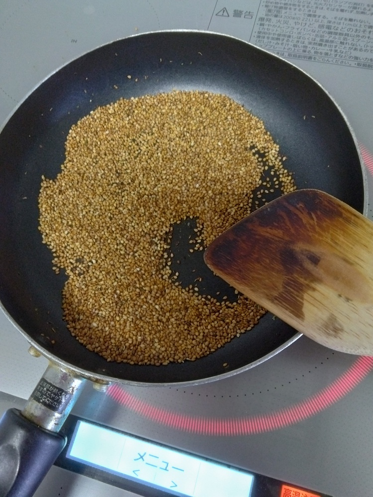 フライパンでごく弱火というので炒りました。